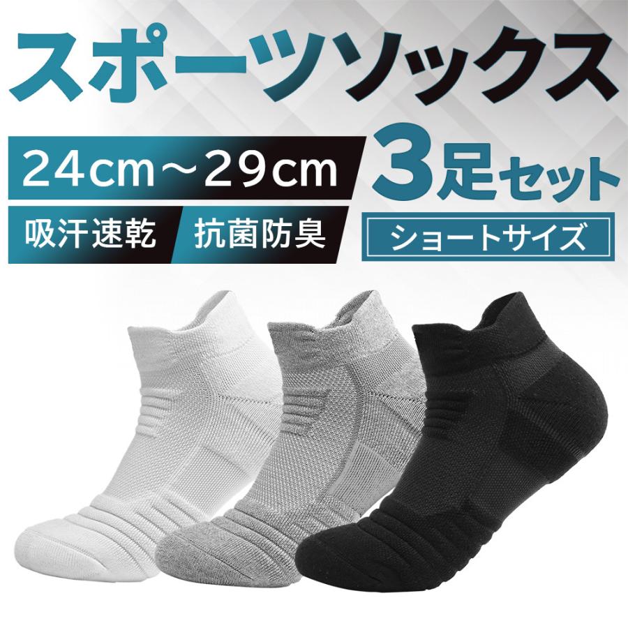 3足セット 靴下 メンズ スポーツソックス くるぶし ショート 厚手 おしゃれ メール便送料無料対応可